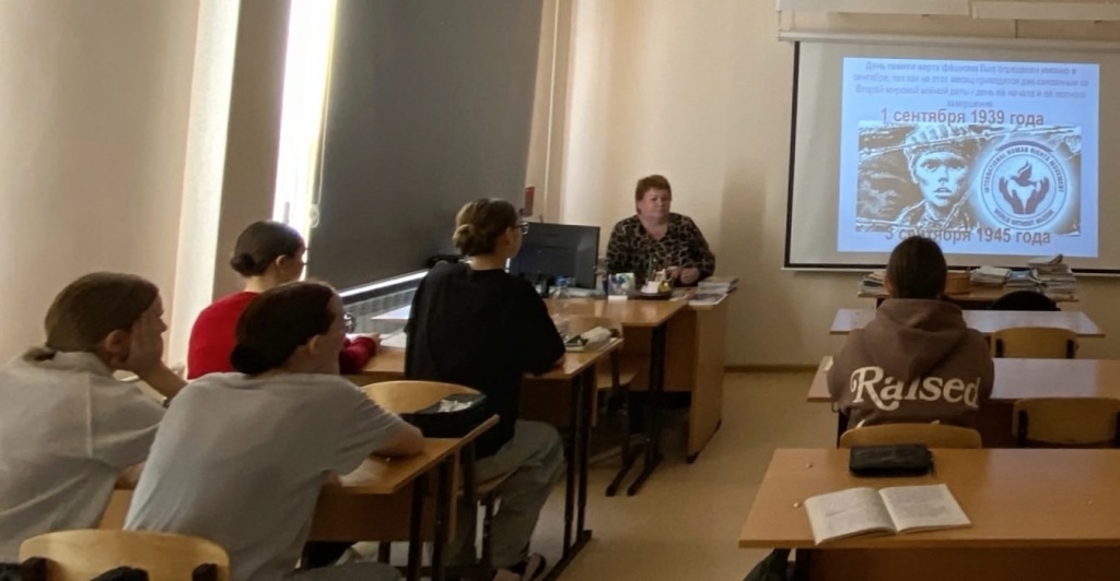 В преддверии этого дня студенты на тематических занятиях вместе с педагогом Пинаевской Е.И. вспоминали не только тех, кто защищал Родину с оружием в руках, но и мирных жителей, погибших от рук захватчиков, в концлагерях, от голода.