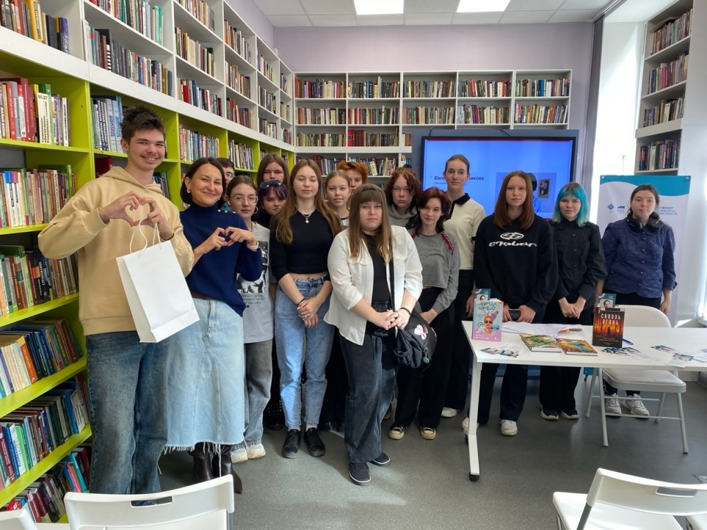 Это второе мероприятие, которое посещают наши будущие библиотекари в рамках фестиваля «Молодежь выбирает классику», организаторами которого являются Молодежная библиотека РК и Российский фонд культуры. На сей раз они встретились с Евгенией Овчинниковой - писателем , автором остросюжетных произведений для подростковой аудитории, сценаристом из Санкт-Петербурга.