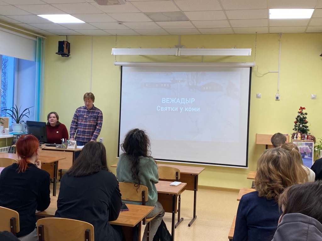 Второе занятие, которое состоялось 26 января, для студентов специальности Социально-культурная деятельность, погрузило их в атмосферу старинного праздника коми народа "Вежадыр" (Святки у коми).