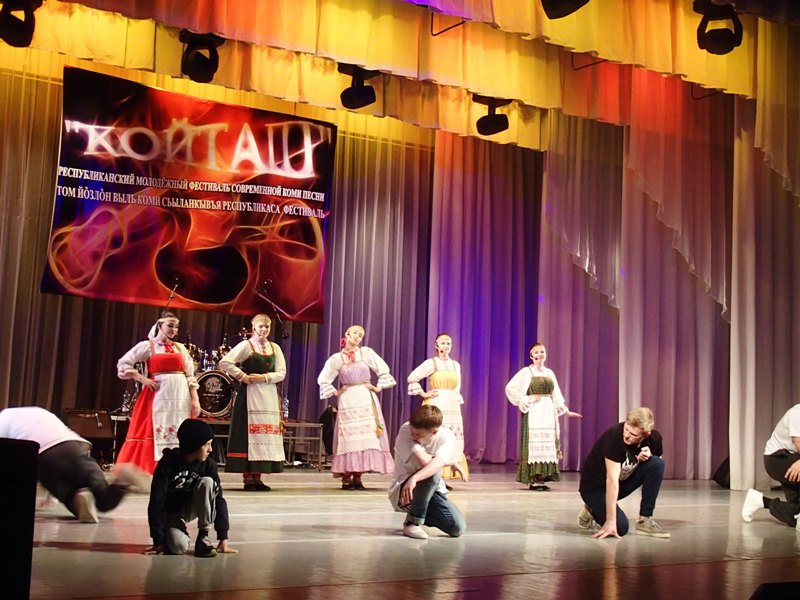 На этот раз выступление "Эзысь Войт" абсолютно фантастически дополнил номер студенческой команды по брейк дансу "Кomi Ringz". Этот коллектив существует с 2007 года и за эти несколько лет стал очень популлярным в Республике Коми. Заводных талатливых ребят частенько можно увидеть на разных сценических площадких Сыктывкара. "Кomi Ringz" (худ. руководитель Евгений Балыкин) неоднократно становился победителем республиканских конкурсов. Как рассказал участник коллектива, студент колледжа культуры Андрей Шуканов, слаженный оригинальный номер, который был представлен зрителям "Койтыша" на самом деле был импровизацией!