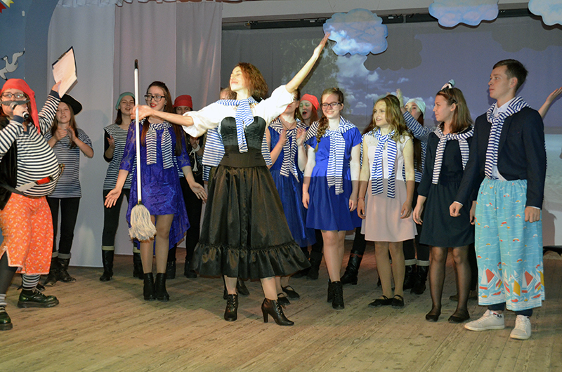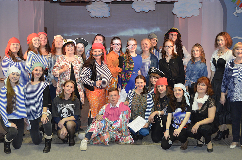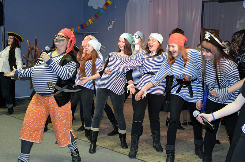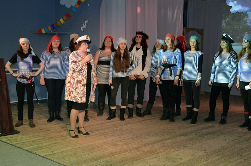 На сцене появились во главе с Джеком Воробьём матёрые пираты – студенты выпускного курса – и устроили «не нюхавшим пороха» первокурсникам суровые творческие испытания. Новички, вдохновлённые напутственными словами капитана этно-корабля Татьяны Алексеевны Кочневой и поддержкой классного руководителя Екатерины Владимировны Матвеевой,  и частушки пели, и «Яблочко» танцевали, и в игры играли, и со скороговорками управились под пристальным вниманием обаятельного Бармалея – Алёшиной Галины Александровны, преподавателя и режиссёра всего этого яркого мероприятия. А преподаватели специальности Нина Ананьевна Матвеева, Светлана Степановна Екимова и Мария Владимировна Альхименок пожелали «молодым, зелёным, новичкам холёным» поддерживать друг друга, быть верными студенческому братству, и чтобы колледж стал для них вторым домом, местом, куда хочется приходить с радостью, удовольствие и отличным настроением.