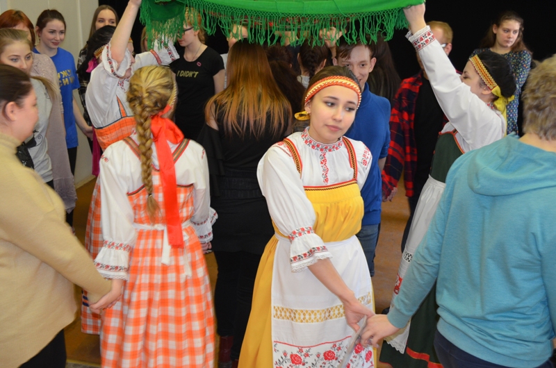 21 февраля в Колледже культуры состоялось праздничное мероприятие, посвященное празднованию «Дню родного языка». Преподаватели и студенты колледжа окунулись в мир культуры коми народа. В этот день для них прозвучали народные и авторские песни на коми и русском языках в исполнении вокальной группы ансамбля «Пелысь мольяс» и ансамбля «Северная околица» (Лауреат Международных конкурсов). В фойе колледжа желающие могли поучаствовать в конкурсе коми частушек, поиграть на коми народных инструментах, исполнить песню «Марьямоль» (караоке по-коми). Праздник завершили коми народные игры, в которые с удовольствием играли и взрослые, и дети. Особый интерес и веселье вызвали подвижные коми народные игры – «Чур, юр» («Чур, голова»), «Горань» («Жмурки»), «Ошкаысь» («У медведя»), «Чунькытш» («Кольцо»), «Окасьöмысь ворсöм» («Поцелуйная игра»). За задор и активность участники получили памятные подарки, в том числе коми национальные сувениры – обереговые куклы, сделанные руками студентов. Праздник получился ярким, запоминающимся, по-настоящему родным и народным, в лучших традициях Колледжа культуры.