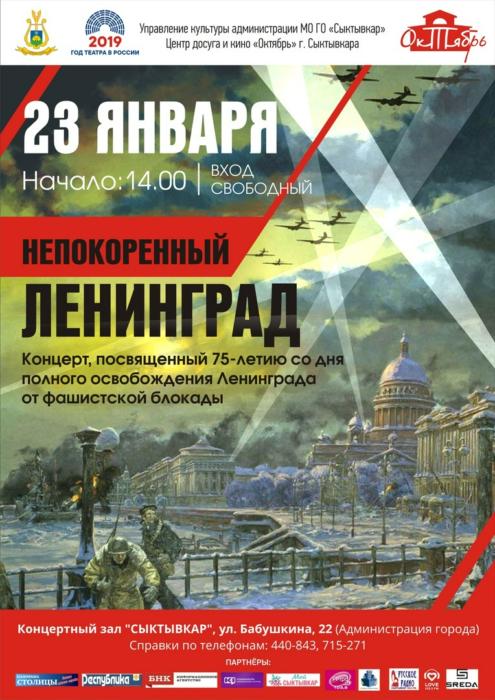 23 января в столице Республики Коми прошёл праздничный концерт «Непокорённый Ленинград», посвящённый дню воинской славы. Пожилых свидетелей блокады, а их проживает в Сыктывкаре  17 человек, наградили памятными знаками от правительства Санкт-Петербурга в честь 75-летнего юбилея со дня освобождения Ленинграда, а также вручили поздравительные открытки от высокопоставленных чиновников и подарки от мэрии Сыктывкара. Студенческий ансамбль народной песни и танца "Пелысь мольяс" происоединился к поздравлениям зажигательным творческим номером.