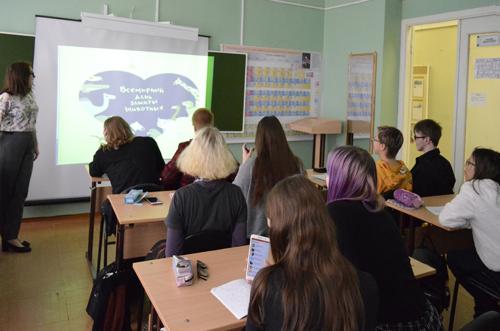 Студенты из беседы узнали об истории Всемирного дня защиты животных в мире, а также в России. Следует отметить, что ребята приняли активное участие в обсуждении проблем сохранения видов диких животных, а также с удовольствием поделились о том, какие домашние животные есть у них дома.